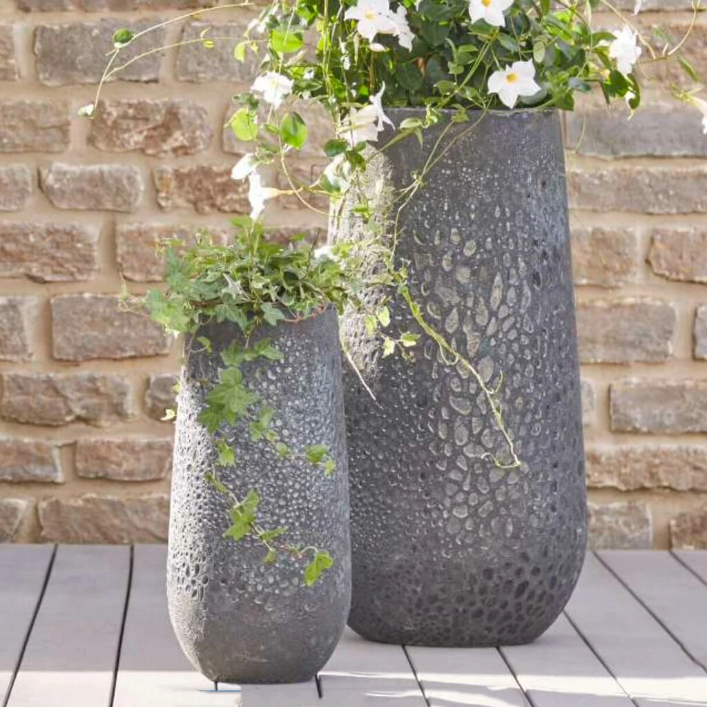 Bei dem verwendeten Material handelt es sich um ein Ton-Sand-Gemisch, welches bei 1250°C zu Keramik gebrannt wird. Die Keramik ist winterfest und hat eine raue Oberflächenstruktur. Es handelt sich um schwere Ware. Da die Produkte in Handarbeit gefertigt werden, kann es stets zu Abweichungen in Farbe und Oberflächenstruktur kommen.