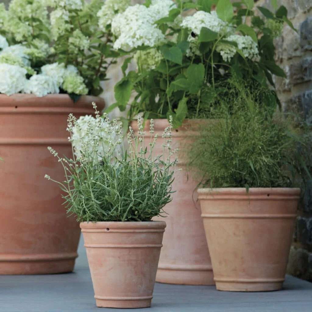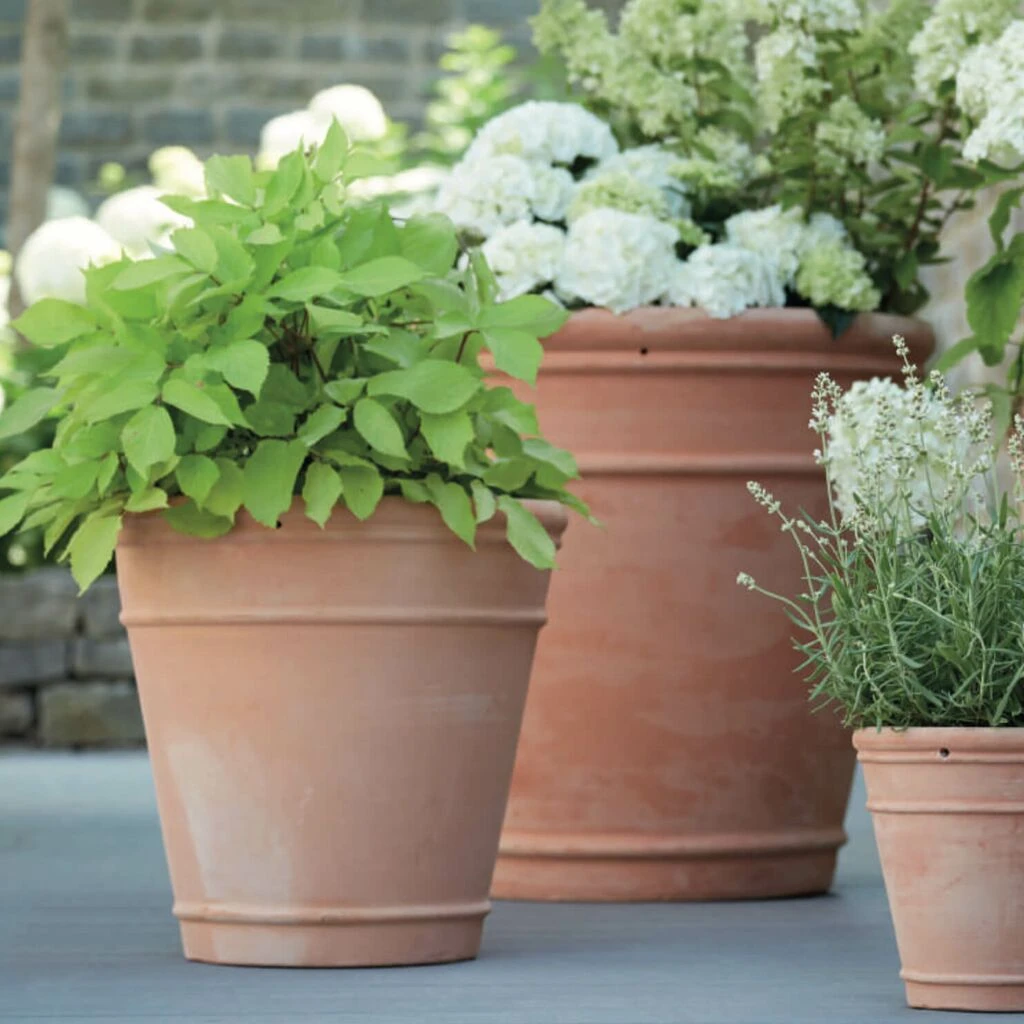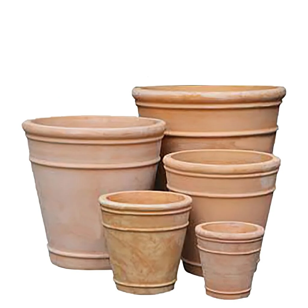 Bei dem verwendeten Material handelt es sich um Terrakotta, ein unglasiertes keramisches Produkt aus gebranntem Ton. Das Pflanzgefäß Set wird in Handarbeit gefertig und bei einer Temperatur von 900°C -1.000°C gebrannt. Es handelt sich hier um Terrakotta in natürlicher Färbung. Dieses Produkt ist nicht winterfest und muss in der Winterzeit ins Haus geholt werden.