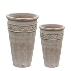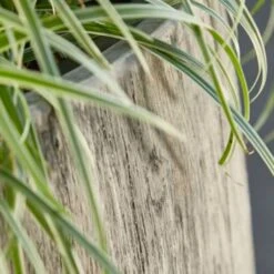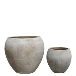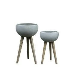 2er Set Pflanzkübel Aus Polystone Mit Einsatz – Rund – Grau Mit Holzstruktur-Optik – Yemaya