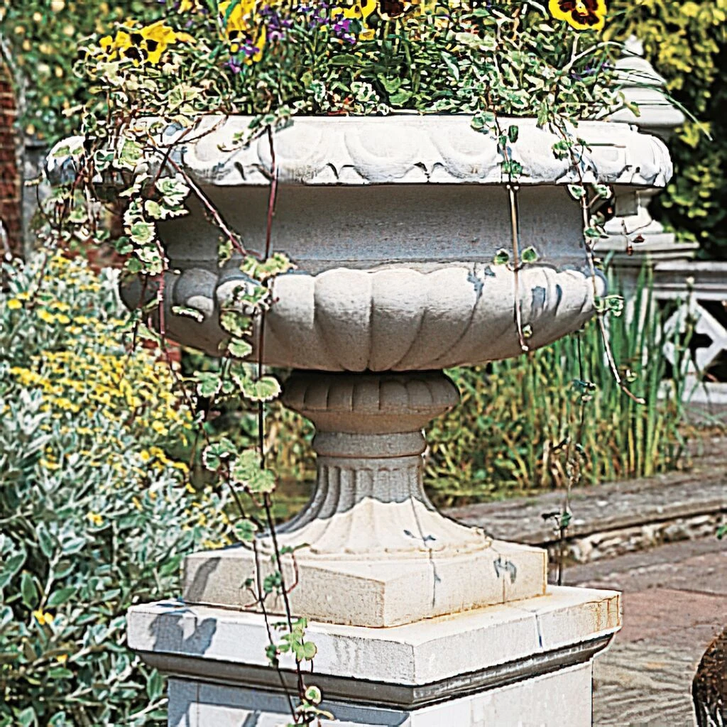 Diese stilvolle Gartenamphore ist eine Nachbildung der Original-Vorlage aus dem frühen 19. Jh. Pflanzgefäße aus Stein gelten seit jeher als beliebtes Dekorationsmittel, welches Glanz und Reichtum verbreitete. Mit dem Einsatz neuer Werkstoffe, aus denen künstliche Steinamphoren geschaffen wurden, konnten nun auch farbliche Variationen das Gartenambiente verschönern. Beeston Castle wird mit hochwertigem Feinsand, Kalkstein sowie Zement im traditionellen Steinguss-Verfahren gefertigt. Weitere Materialien veredeln die Gartenvase, das Gartengefäß ist witterungsbeständig und frostsicher. In liebevoller Handarbeit werden die Stoffe in einen Abdruck der Original-Vorlage gefüllt und zu einem Unikat verarbeitet. Aufgrund der Farbauswahl – weiß, Sand oder Terrakotta – passt das Steingefäß zu jedem Innen- und Außenbereich. Der künstliche Stein zeichnet sich durch eine glatte Oberfläche aus. Dieses stilvolle Dekorationsmotiv können Sie jetzt bequem von zu Hause aus online bestellen, auf GARTENTRAUM. Wir bieten Lieferservice und beste Qualität.