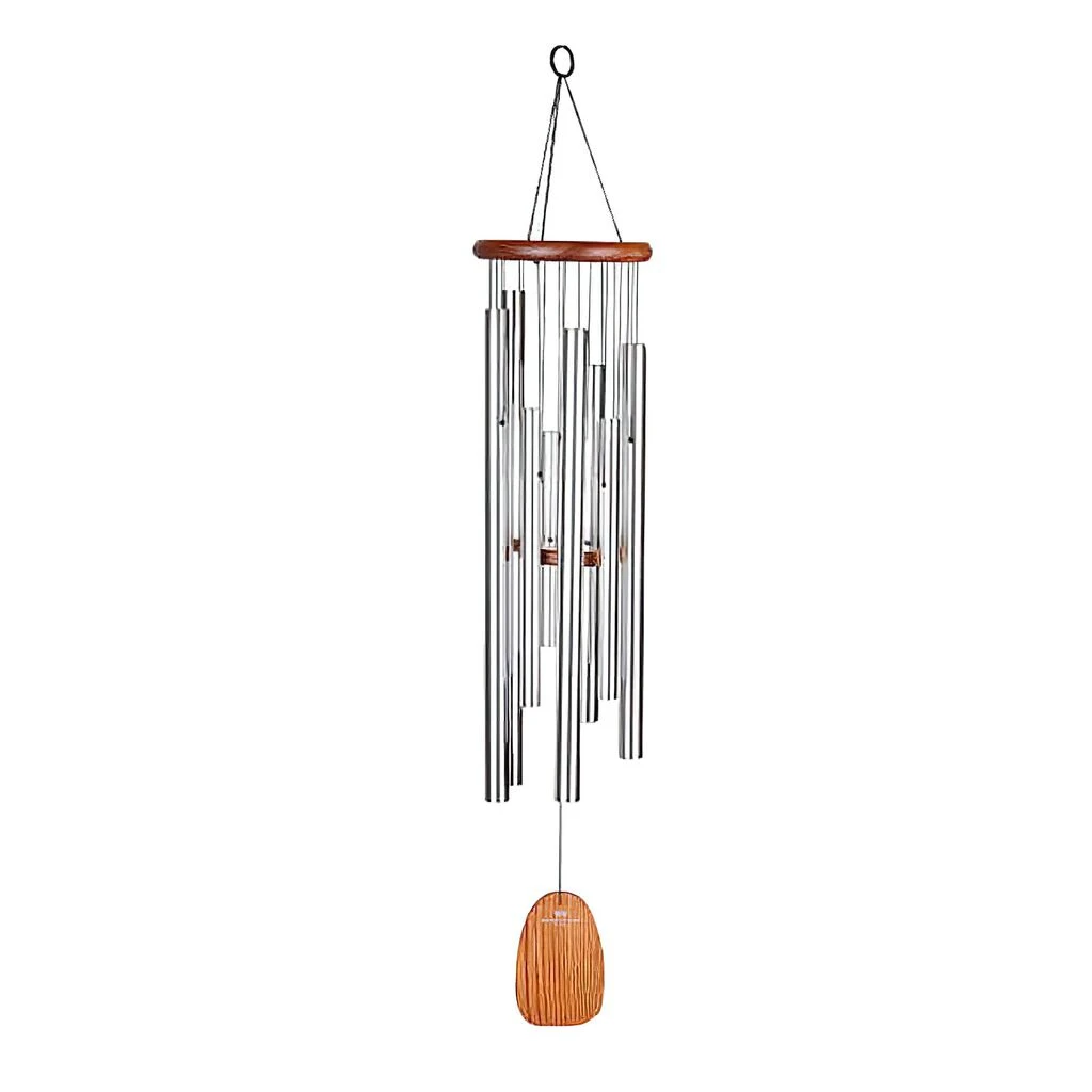Aus Eschenholz mit Teak-Finish im Traditionshandwerk gefertigt, zeichnet sich das Klangspiel durch die Verwendung von 10 silbernen Röhren aus. Die Melodie dieses Windspiels wird mittels einer Oktav-Verdoppelung zu einem einzigartigen Klangwerk.
