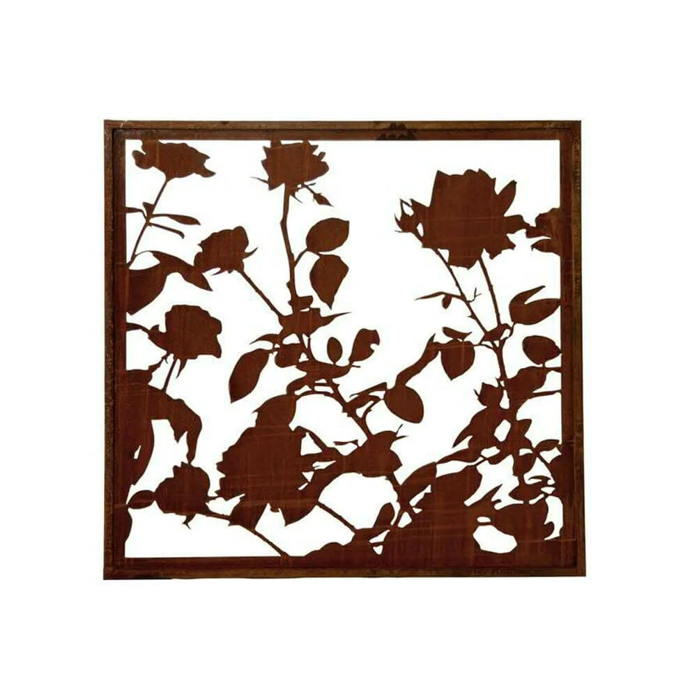 Stilvolles Rosen Bild aus rostigem Metall für den Garten. Das Scherenschnitt Rosenbild für drinnen und draußen ist ein echter Hingucker und wird die Blicke auf sich ziehen.