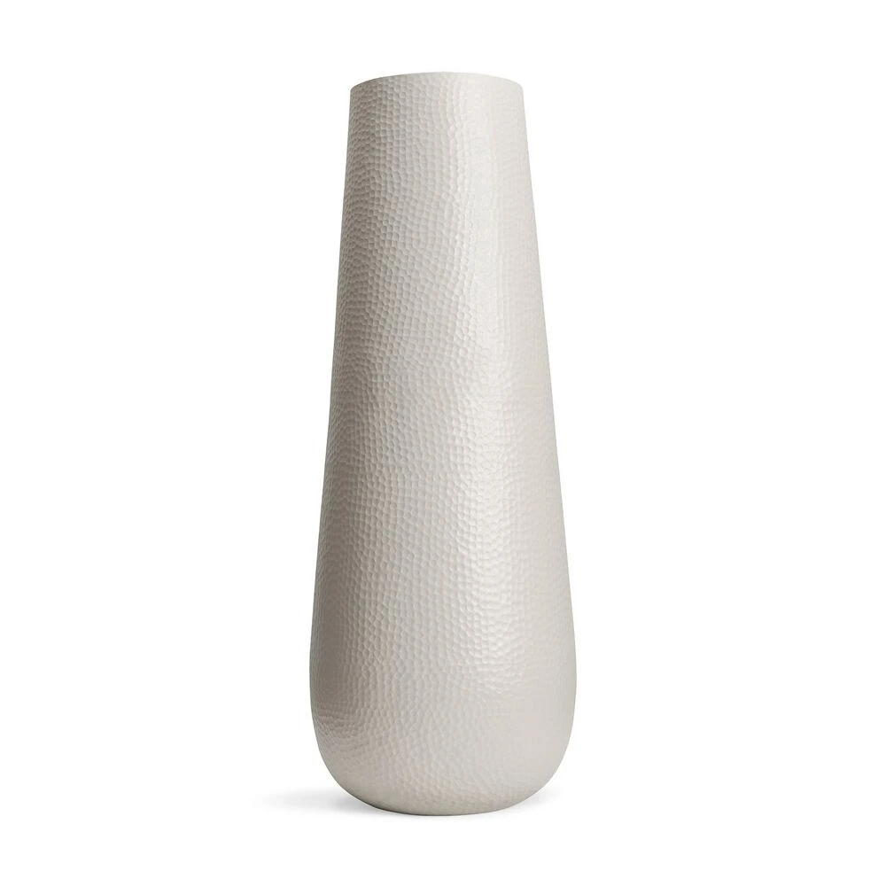 Mit einer Oberfläche im Hammerschlag-Design ist diese elegante Gartenvase aus Aluminium ein besonderes Dekoelement im Außenbereich.