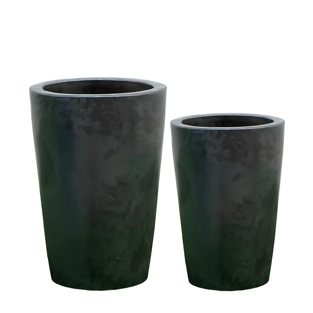 Runde Outdoor Pflanzgefäße Aus Keramik – Anthrazit – Estano