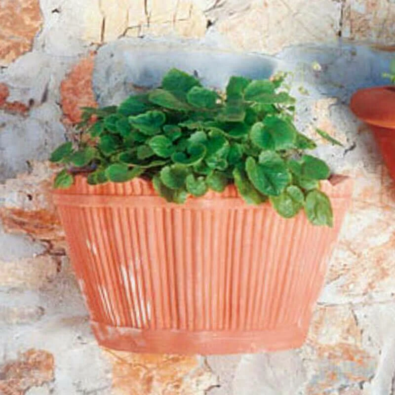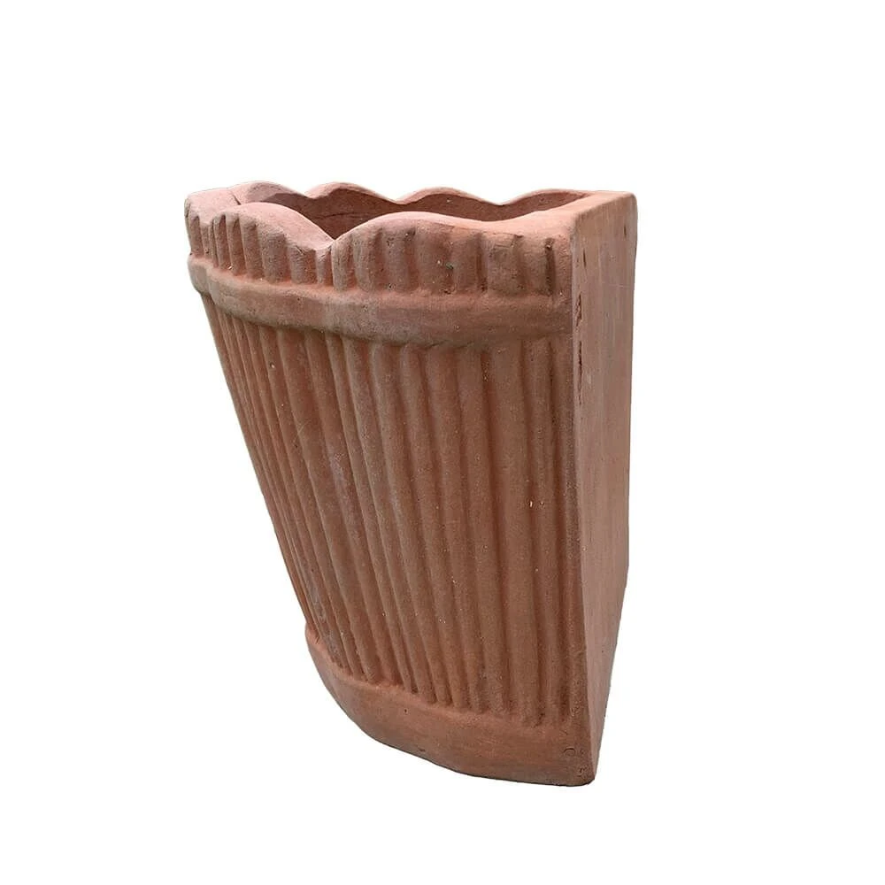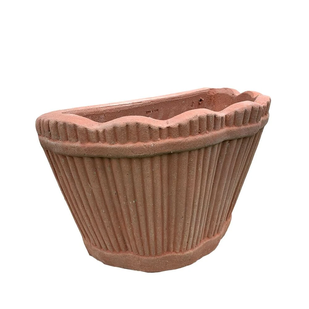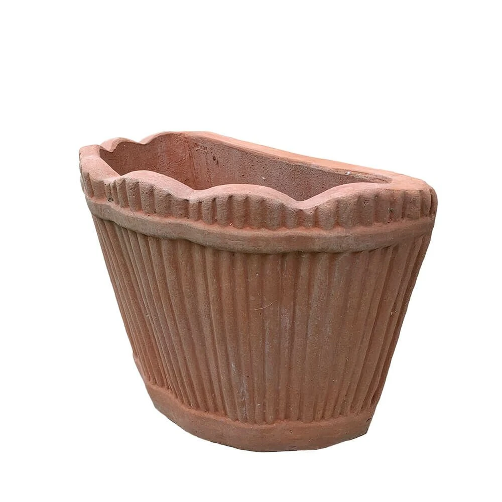 Bereits in der Antike und der Renaissance stellte Terrakotta ein beliebtes, leicht zu bearbeitendes Material dar, um Skulpturen, Vasen und Säulen stilvoll und gleichzeitig robust herzustellen. Für die Verarbeitung wird ein spezielles, eisenhaltiges Tongemisch verwendet, welches den Pflanztöpfen einen einzigartigen warmen, roten Farbton mit Nuancen verleiht. Für dieses Pflanzgefäß wird Impruneta-Terracotta verwendet, mit einem besonders hohen Anteil an Kuper-, Eisen- sowie Aluminiumoxiden. Nachdem das Steingut abgebaut und gekocht wurde, wird das Material zu einem Blumentopf geformt, welcher in liebevoller Handarbeit Verzierungen erhält. Nach der Modellierung erfolgt der Brennprozess im traditionellen Holzofen bei 960°C. Die für Terrakotta übliche Brenntemperatur liegt somit bei dieser speziellen Sorte höher. Im Gegensatz zu klassischem Ton erhält dieser Naturstoff keine Glasur am Ende der Bearbeitung. Passend zu dem Pflanzgefäß finden Sie bei uns Podeste und Skulpturen aus Terrakotta.
