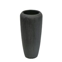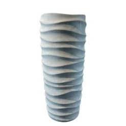 Indoor Pflanzvase Mit Einsatz Aus Polystone – Silber – Rund – Senkrechte Rillenmuster – Adanna