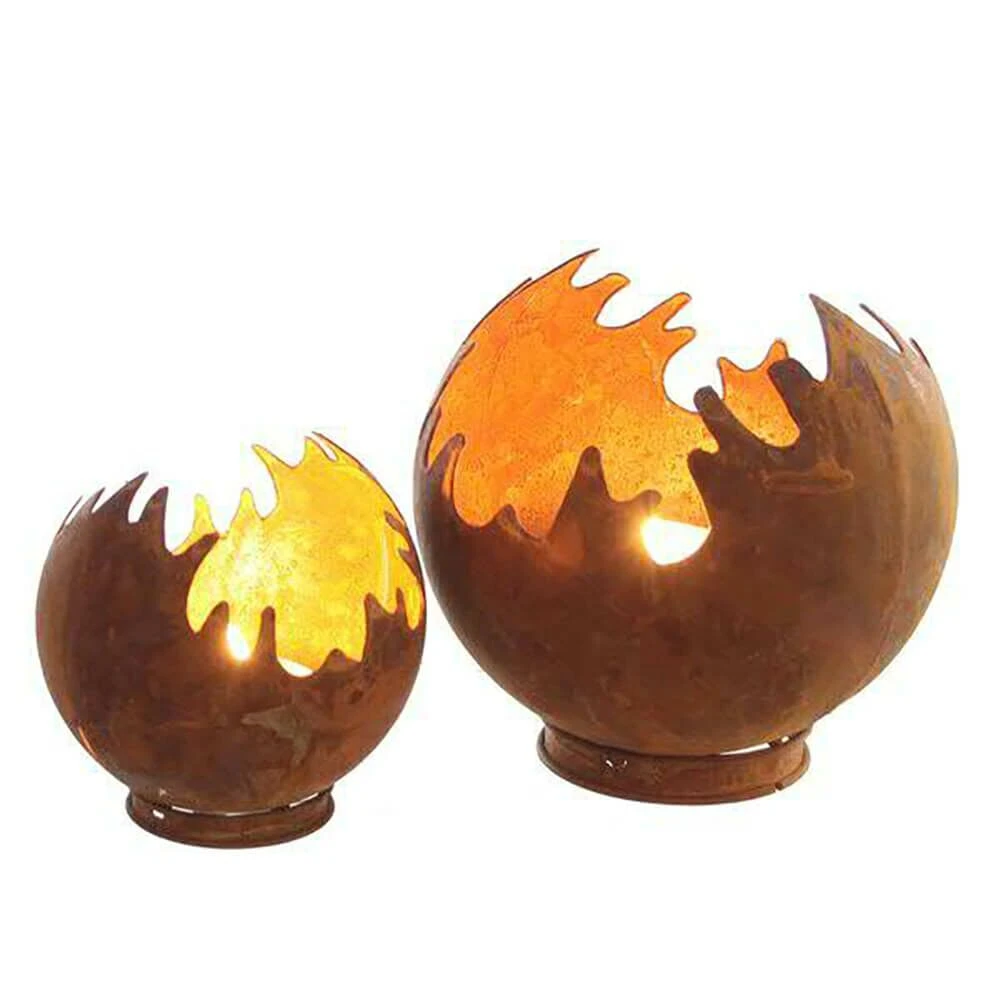 Es handelt sich hierbei um ein Set bestehend aus zwei Windlichtern in Form einer Feuerkugel. Die Windlichter werden aus rostigem Metall gefertigt und sind ein attraktiver Hingucker im Innen- als auch im Außenbereich.